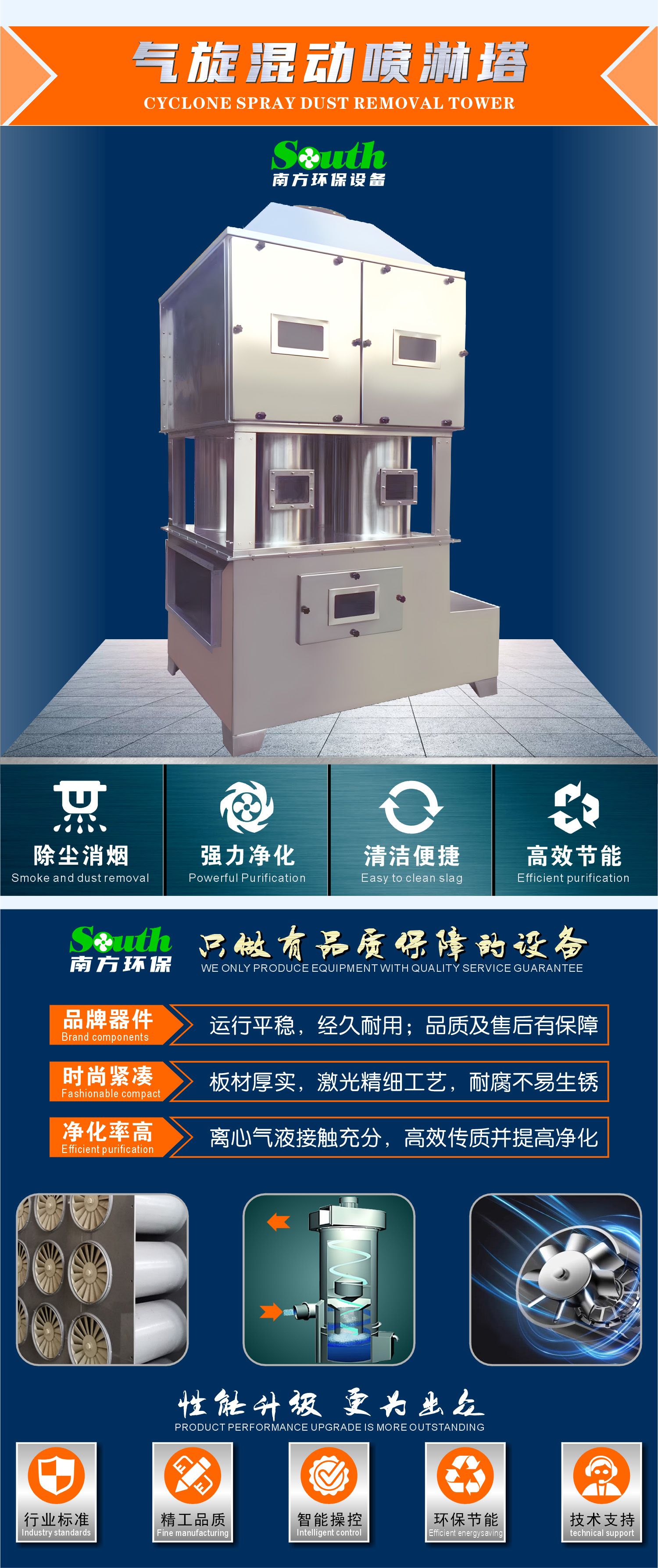 旋流方形喷淋吸收塔 不锈钢喷漆房漆雾除臭高效废气净化设备按需订制