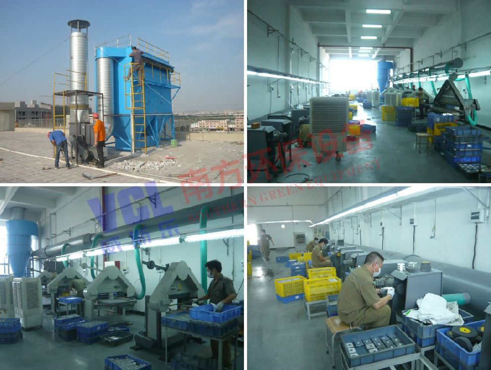 经中山南方环保工程设备公司现场堪察、对打磨、抛光车间粉汪废气进行治理回收净化;治理工艺:生产性粉尘→ 集尘罩→粉尘预处理→袋式集尘器 → 离心风机→ 达标排放;设计处理风量:Q=36000M3/H;经投入运行及检测,设施的净化效果各项指标均达到厂方车间环境卫生及环保排放规定之要求。